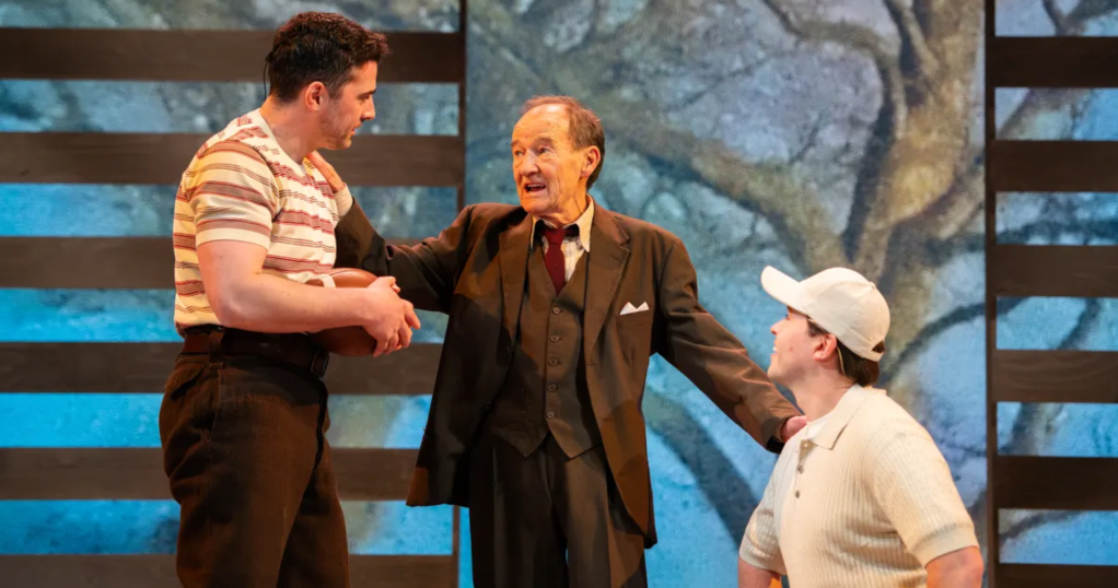 Hayman as Willy Loman, with Cahill as Biff and Wallace as Happy — his onstage sons